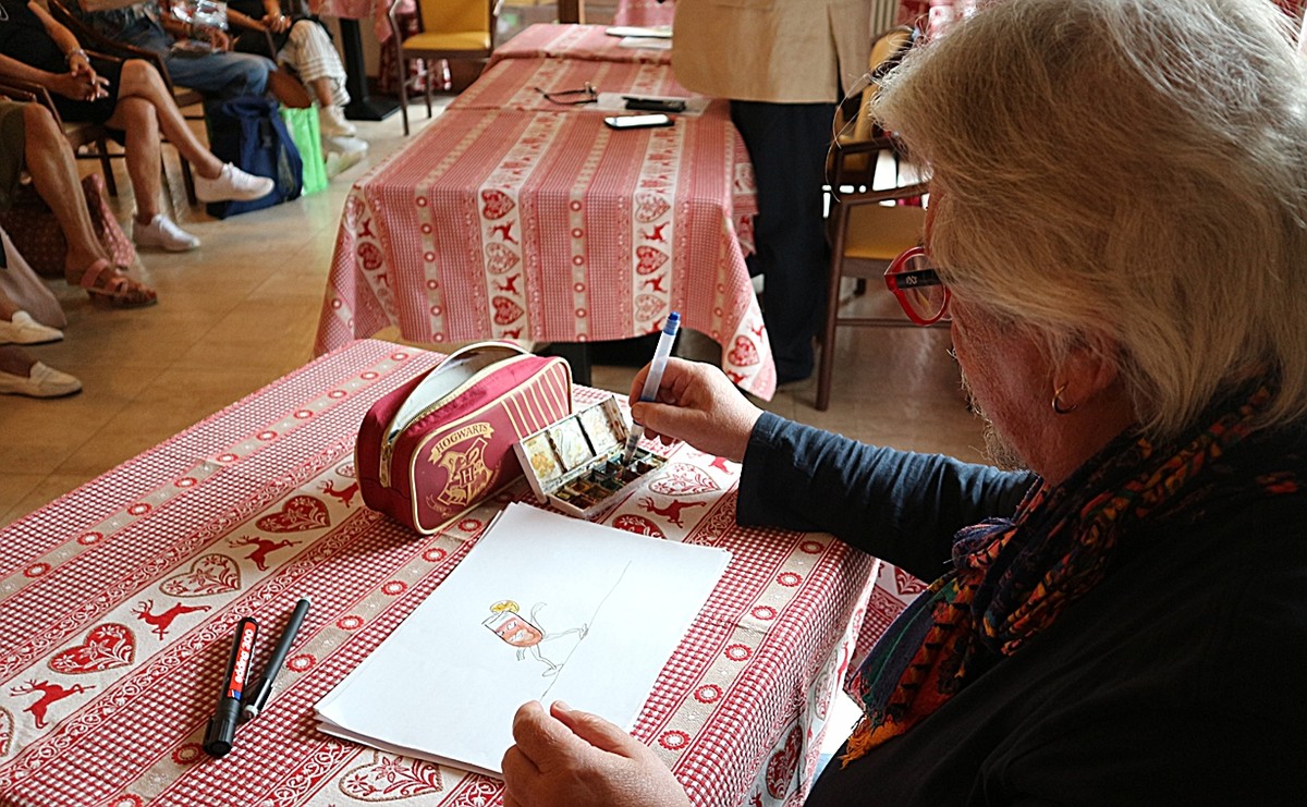 La serata è stata resa ancora più vivace dalle vignette realizzate in diretta dal cartoonist Tiziano Riverso, che con ironia ha illustrato i temi trattati dalla relatrice. I disegni, accolti con entusiasmo dal pubblico, diventeranno parte di una mostra e di un opuscolo arricchito dai testi di Barbara Ronchi della Rocca.