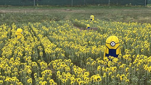 Una finestra che si apre su un campo di girasoli abitato dai Minions.