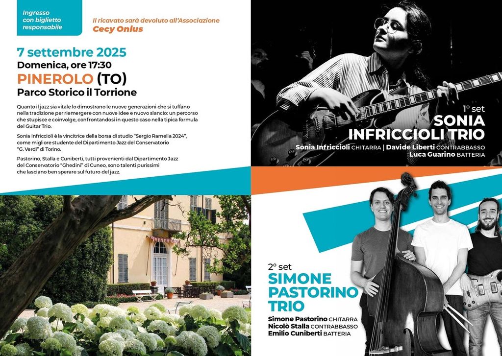 Nuovo appuntamento per JazzVisions 2025, domenica 7 settembre, presso il Parco Storico del Torrione, a Pinerolo. Un luogo magnifico che con i suoi ampi spazi ospiterà musica, arte e solidarietà.