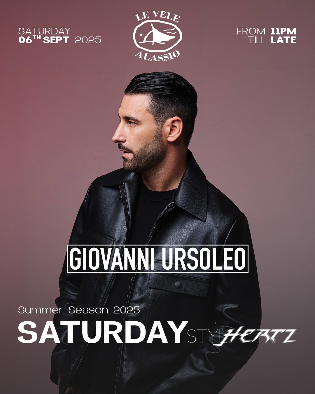 Il gran finale della settimana è affidato al leggendario sabato notte de Le Vele Alassio, appuntamento imperdibile per gli amanti del clubbing di qualità. Dalle ore 23:00 torna Stylhertz, con una line up d'eccezione: in consolle Giovanni Ursoleo, direttamente dai migliori Club italiani, affiancato dal resident DJ Tigani. Una notte dal respiro internazionale, perfetta per gli amanti della dance elettronica più ricercata e dei beat più raffinati, con un mix esplosivo di sonorità e vibrazioni da pista affollata: un sabato notte che è già leggenda.