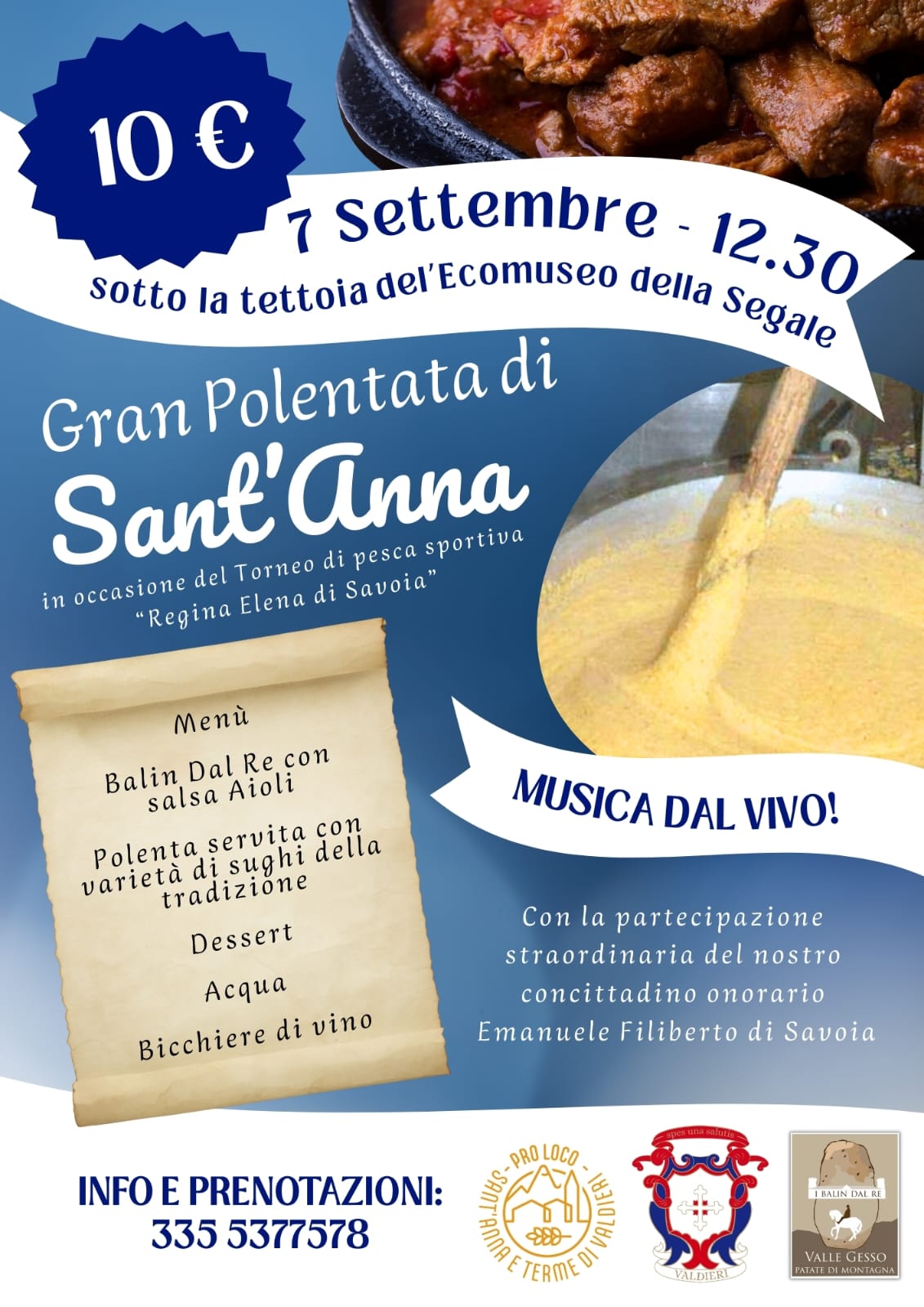 Domenica 7 settembre Sant'Anna di Valdieri ospiterà la prima edizione della gara di pesca sportiva in omaggio alla Regina Elena di Savoia, che per l'occasione vedrà tornare in valle Gesso il principe Emanuele Filiberto per premiare i vincitori, dopo esser diventato cittadino onorario lo scorso anno. Un titolo conferito con apposita cerimonia lo scorso dal Comune di Valdieri. Il ritrovo è previsto alle 7 davanti alla chiesa per dar il via alla sfida alle 8 fino alle 11.30. Alle 12.30 si terranno le premiazioni presiedute dal principe e al termine sarà possibile riunirsi a tavola sotto la tettoia dell'Ecomuseo della Segale per una gustosa polenta (prenotazioni al 335 537 7578) grazie all'organizzazione della Proloco di Sant'Anna di Valdieri e il Consorzio dei balin del Re.