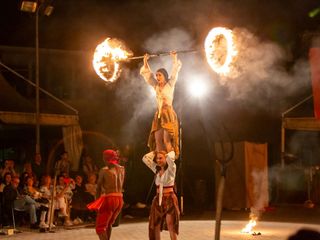 Tratto dal capolavoro di Cervantes, "Quijote!" è un'esperienza teatrale fisica e travolgente. Due attori, un cavallo, un asino e una strada sono tutto ciò che serve per dare vita a questo spettacolo cult. Con pochissimi oggetti di scena e un'energia straripante, i performer Marco Luciano e Maurizio Lupinelli incarnano il cavaliere errante e il suo scudiero, trascinando gli spettatori in un viaggio che alterna comicità e malinconia, risate e visioni.
