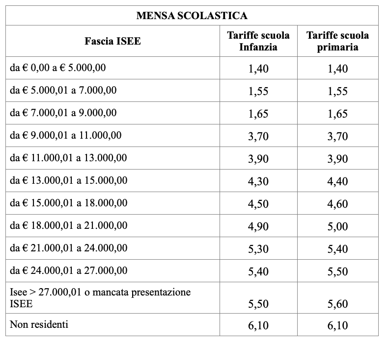 Nel concreto, per quanto riguarda il servizio mensa l’adeguamento è pari a 5 centesimi a pasto per le prime tre fasce ISEE, 10 centesimi dalla quarta all’undicesima fascia.