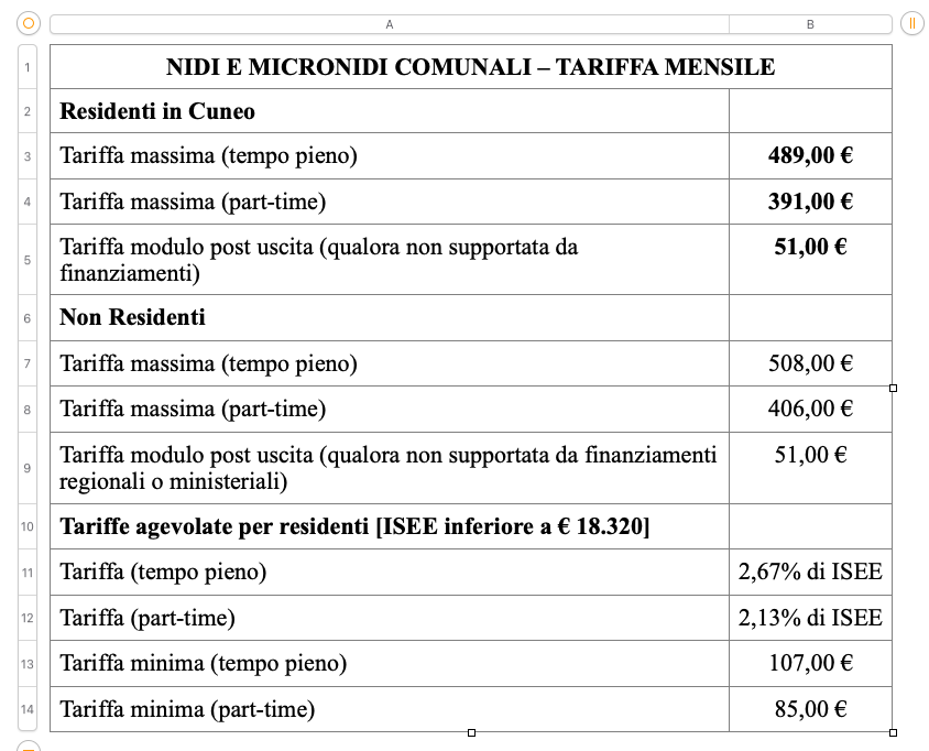 Nelle tabelle riportate in pagina le tariffe adeguate e in vigore per l’anno scolastico 2025-26.