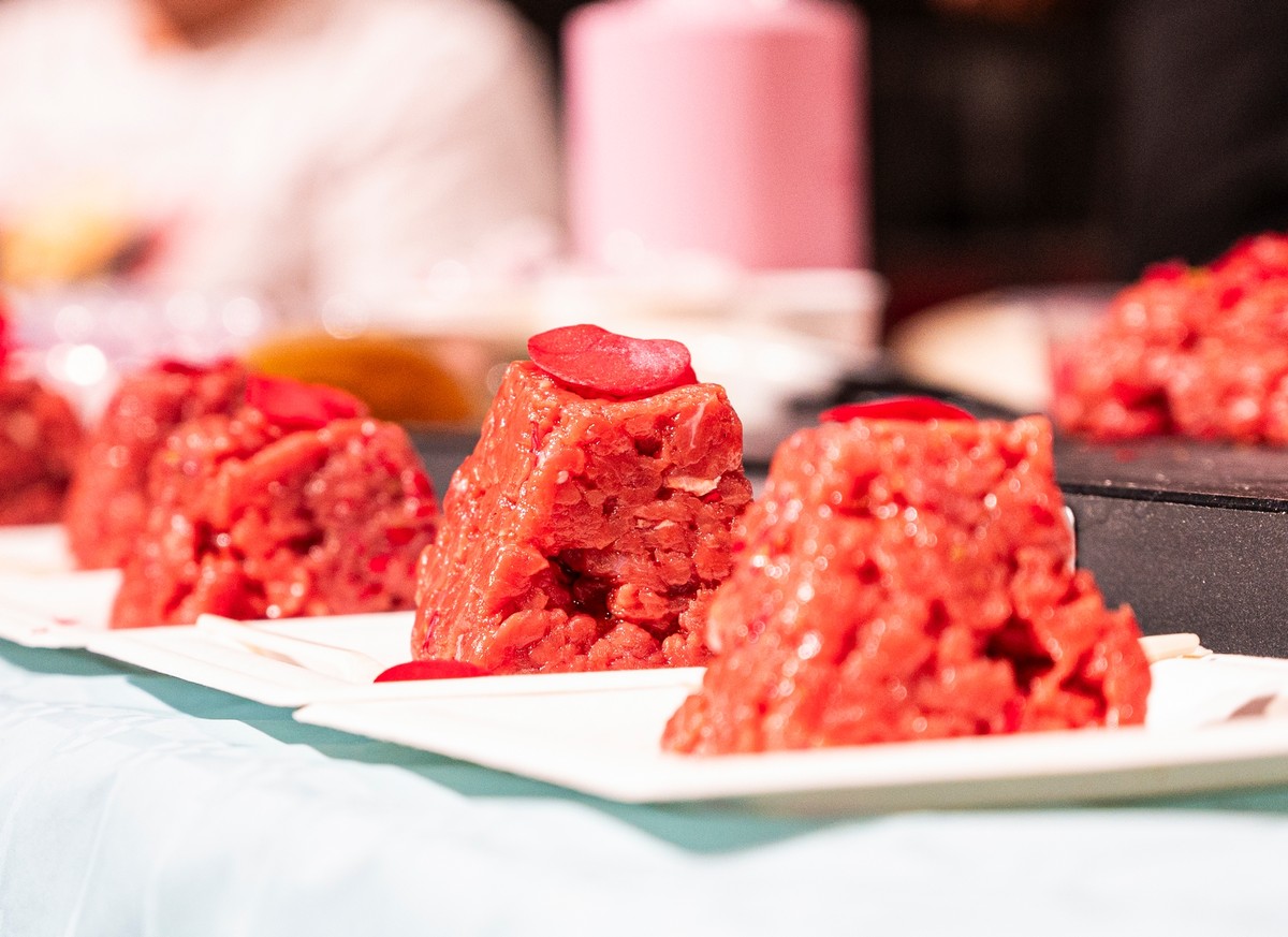 La sua performance culinaria ha unito l’autenticità della carne di Razza Piemontese alla delicatezza dei fiori eduli. Con la complicità di Silvia Parodi dell’azienda albenganese Ravera Bio, infatti, ha proposto un innovativo finger gourmet: da un lato, una battuta di carne in purezza, dall’altro – in omaggio alla Liguria - una sorprendente battuta di begonia, entrambe irrorate da un cuore di BeGin, il nuovo gin alla begonia creato da Tastee.it, trasformando il finger in un’esperienza del gusto tridimensionale, tra consistenza, profumo e aroma.