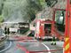 Il fatto a Pieve di Teco in provincia di Imperia. Salvi i passeggeri. A causa del vento brucia anche il bosco