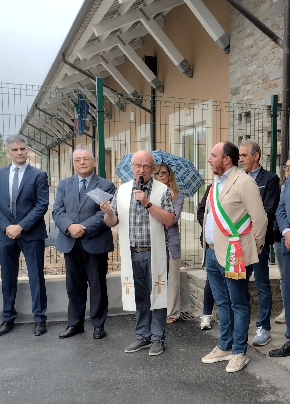 [Il parroco don Osvaldo Merba benedice la nuova scuola]