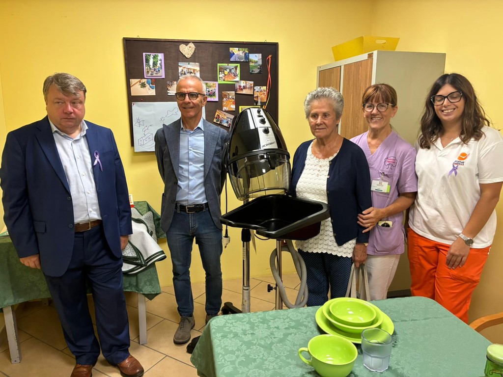 Al centro diurno del Tapparelli, un altro dono: un servizio di apparecchiatura della tavola, con caratteristiche di conformità all’utenza e un set per “la messa in piega” delle ospiti, composto da lavatesta portatile e casco.