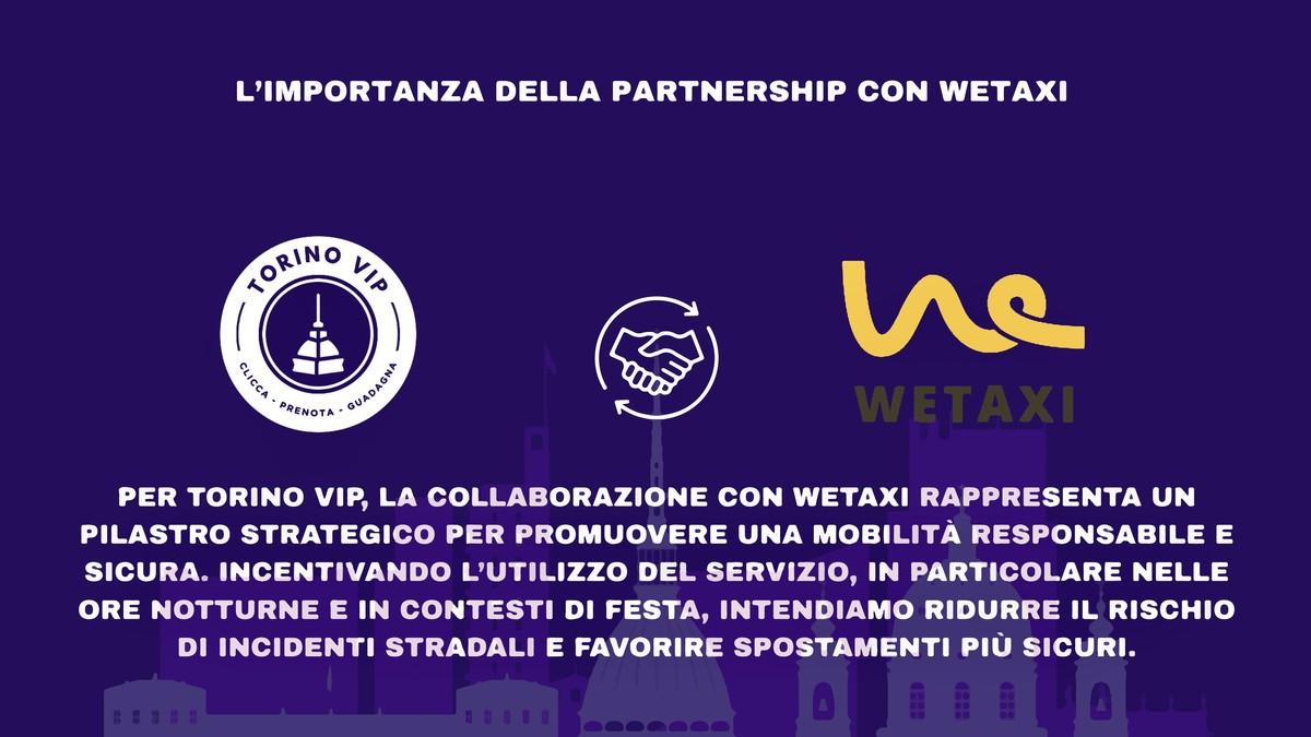 Un altro elemento distintivo è la partnership con WeTaxi, il servizio di taxi smart che consente di prenotare e pagare la corsa via app. Grazie a questa integrazione, chi utilizza Torino VIP potrà spostarsi comodamente e in sicurezza verso i locali affiliati, organizzando la serata dalla prenotazione fino al rientro a casa con un’unica piattaforma. Un passo che amplia i confini del progetto, trasformandolo in un vero e proprio ecosistema del divertimento.