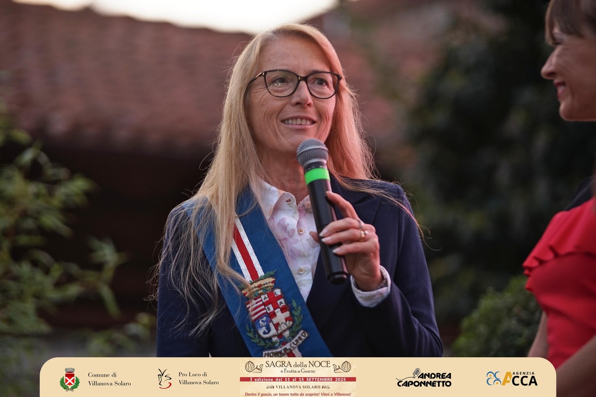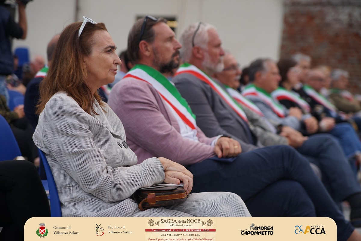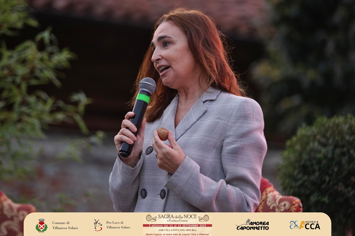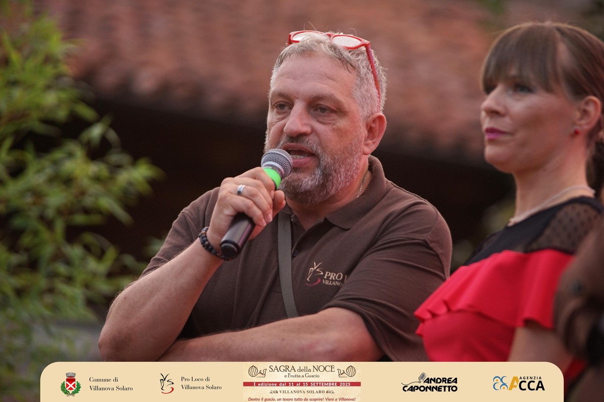 Dopo il convegno del pomeriggio, lo scrigno di piazza Pairotti a Villanova Solaro ha accolto l’inaugurazione ufficiale della prima Sagra della Noce e della Frutta a Guscio: un momento che ha sancito l’avvio della kermesse davanti a un pubblico numeroso e partecipe, con tanti ospiti sul palco. A presentare l’evento Andrea Caponnetto e Ilaria Salzotto.