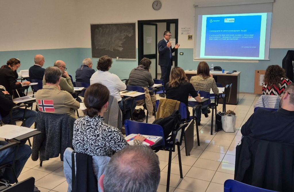 Aggiunge Marco Lombardi, Direttore del C.F.P.: «Questo corso, insieme ad AISPA ed alla sua Presidente Serena Gasco che ringrazio, dimostra quante persone sono interessate all’amministrazione comunale, sia come consiglieri, assessori e sindaci, ma anche come privati cittadini che desiderano frequentare un corso introduttivo nel mondo dei Comuni. Non è un caso che si incontrino persone che vogliono semplicemente qualche strumento per affrontare i numerosi concorsi, quindi appassionati che vogliono far parte dei comuni come professionisti».