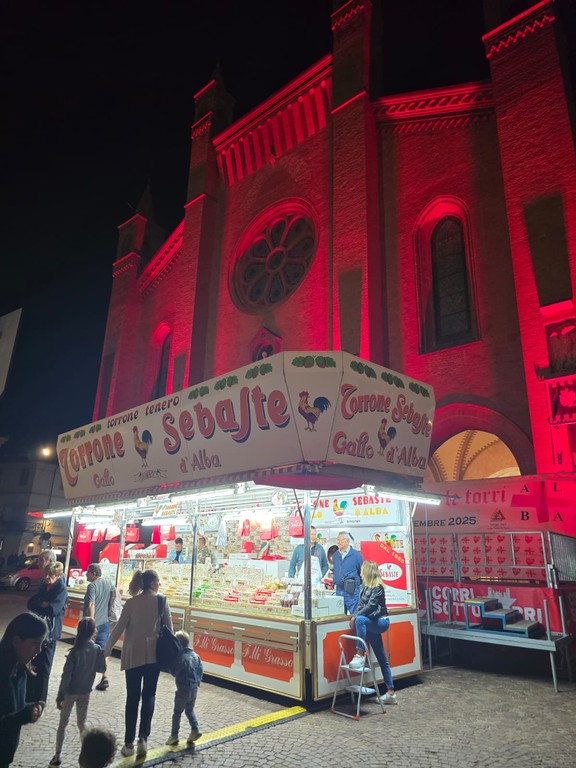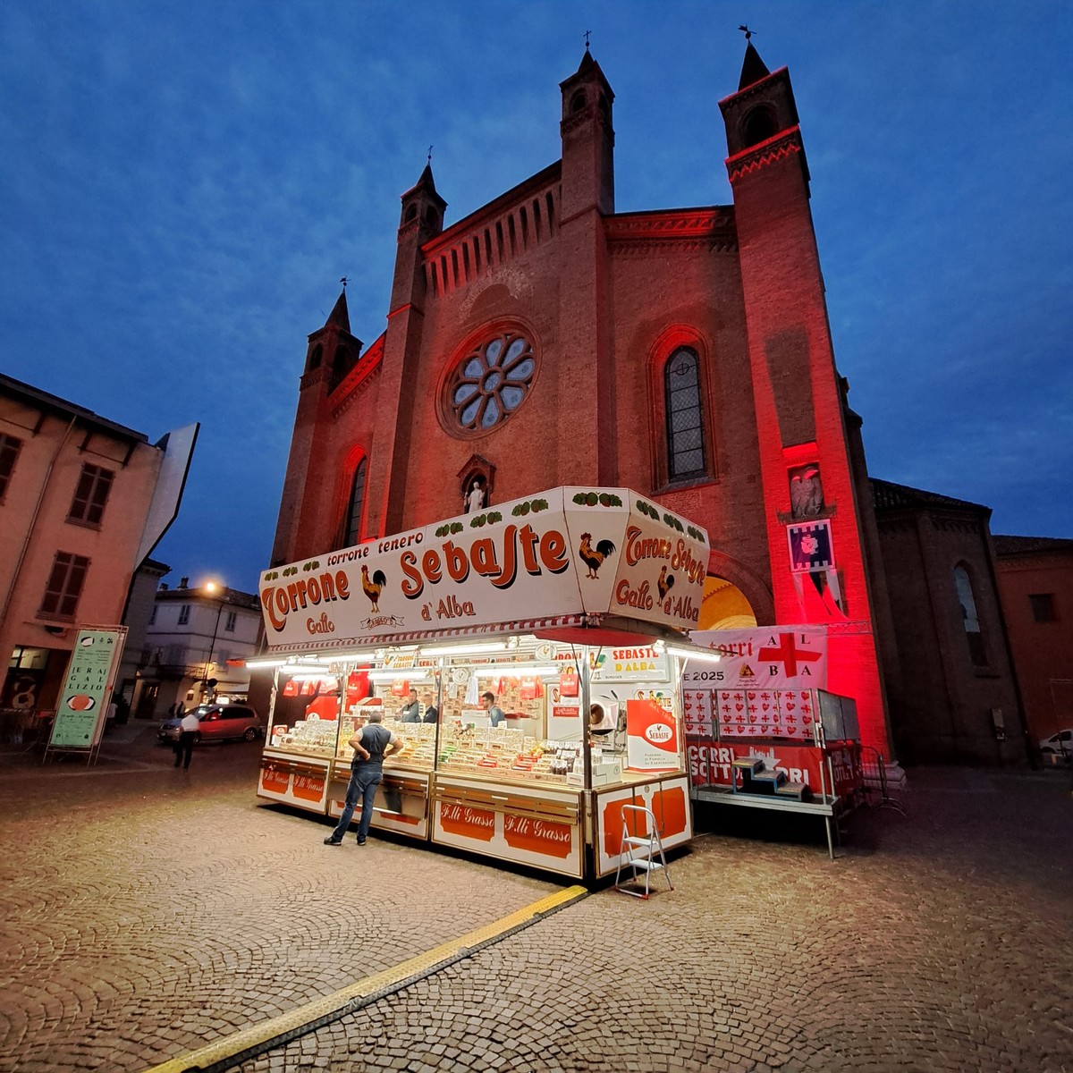Il palchetto, il torrone, il profumo dello zucchero, il galletto Sebaste, simbolo della festa, hanno trasformato per una serata piazza Duomo nel teatro di una festa di paese. Una scenografia suggestiva che meriterebbe di essere ripetuta molto più spesso e non solamente ogni 10 anni in occasione del compleanno dell’azienda del torrone che nel frattempo ha iniziato a sfornare anche meravigliosi tartufini e altre prelibatezze che hanno permesso di diversificare e dare ulteriore stabilità.