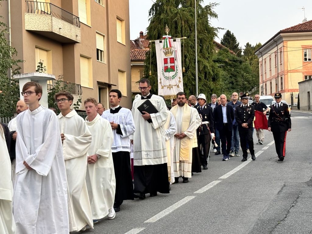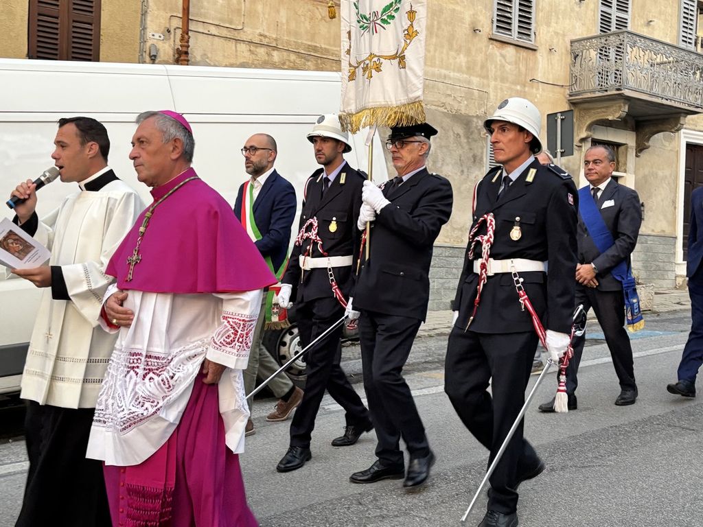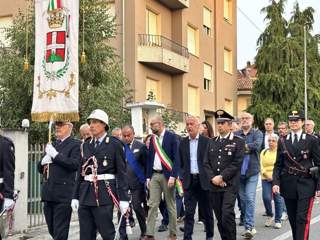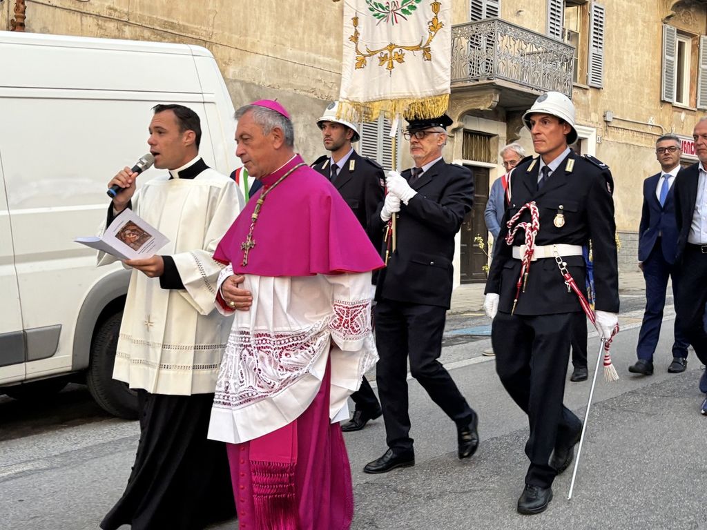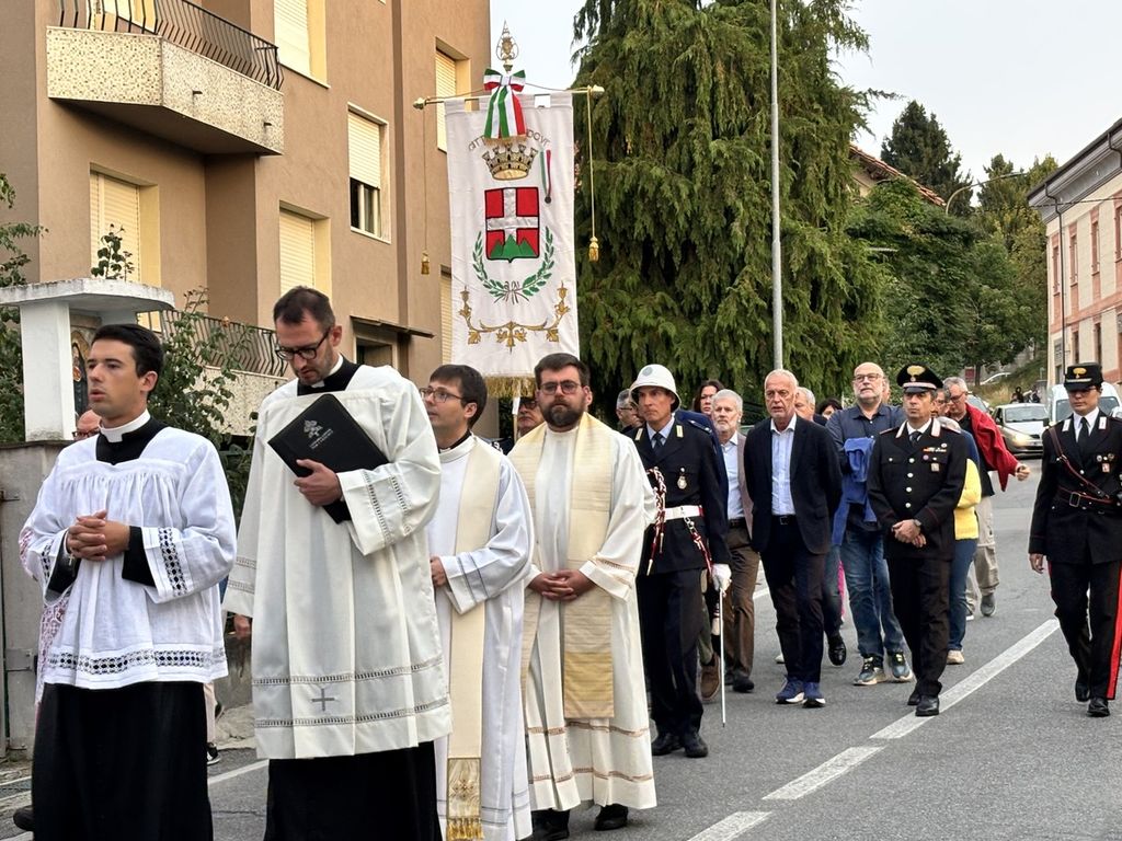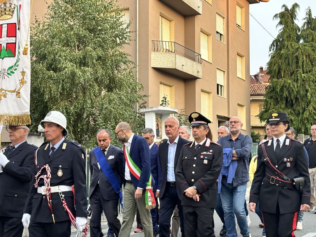 Il corteo, partito dal Duomo di Piazza, ha visto la presenza di tanti amministratori, tra questi il primo cittadino di Mondovì Luca Robaldo, tanti sindaci del territorio, il senatore Giorgio Maria Bergesio, le autorità religione, civili e militari.