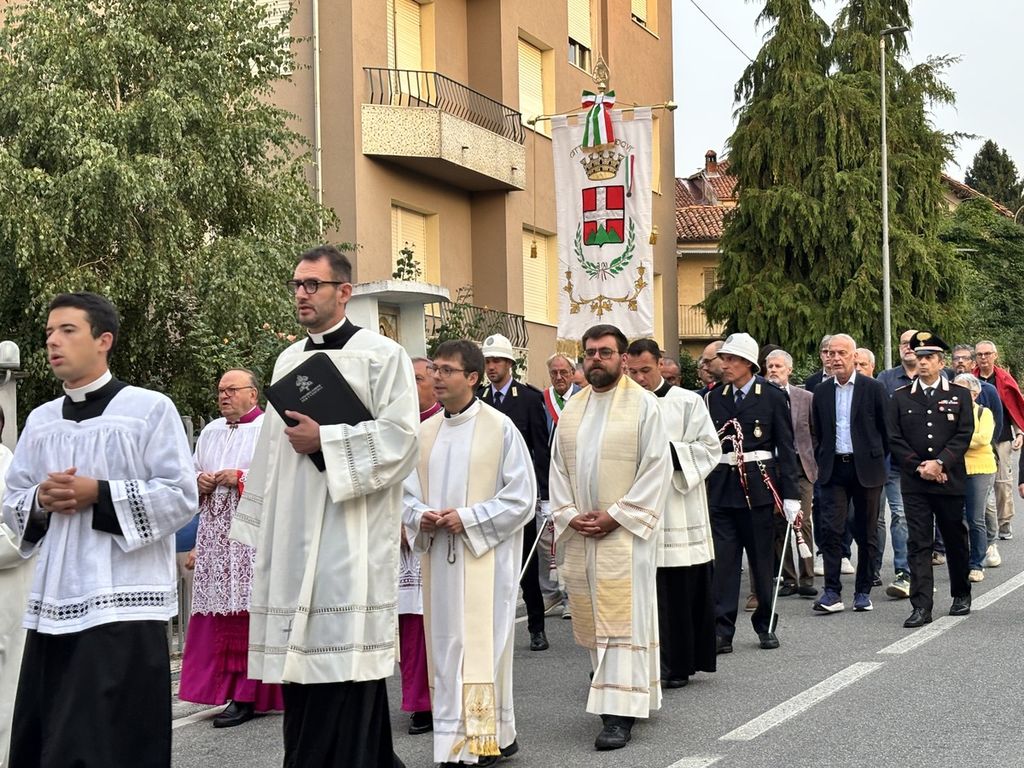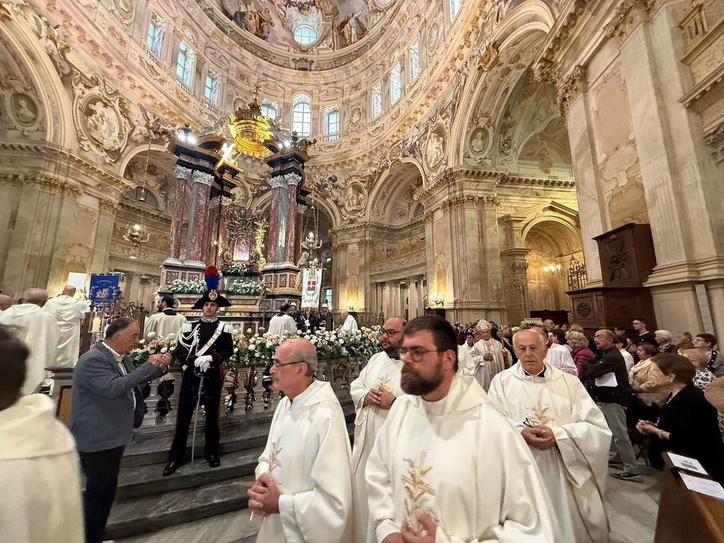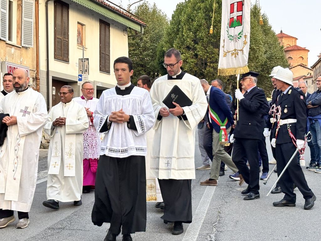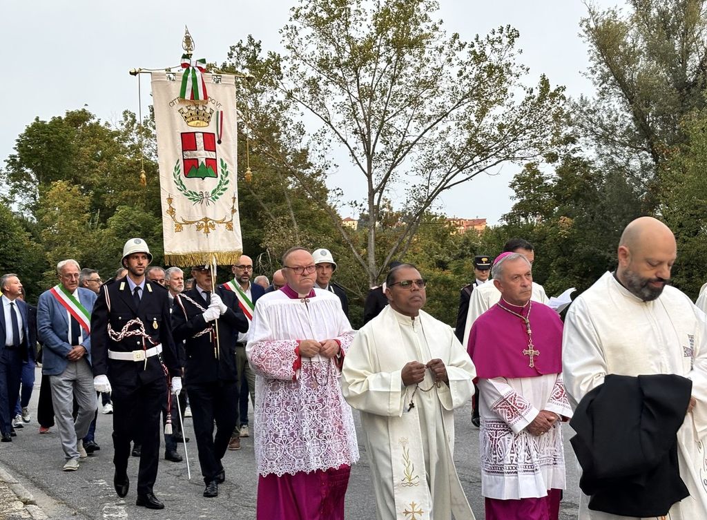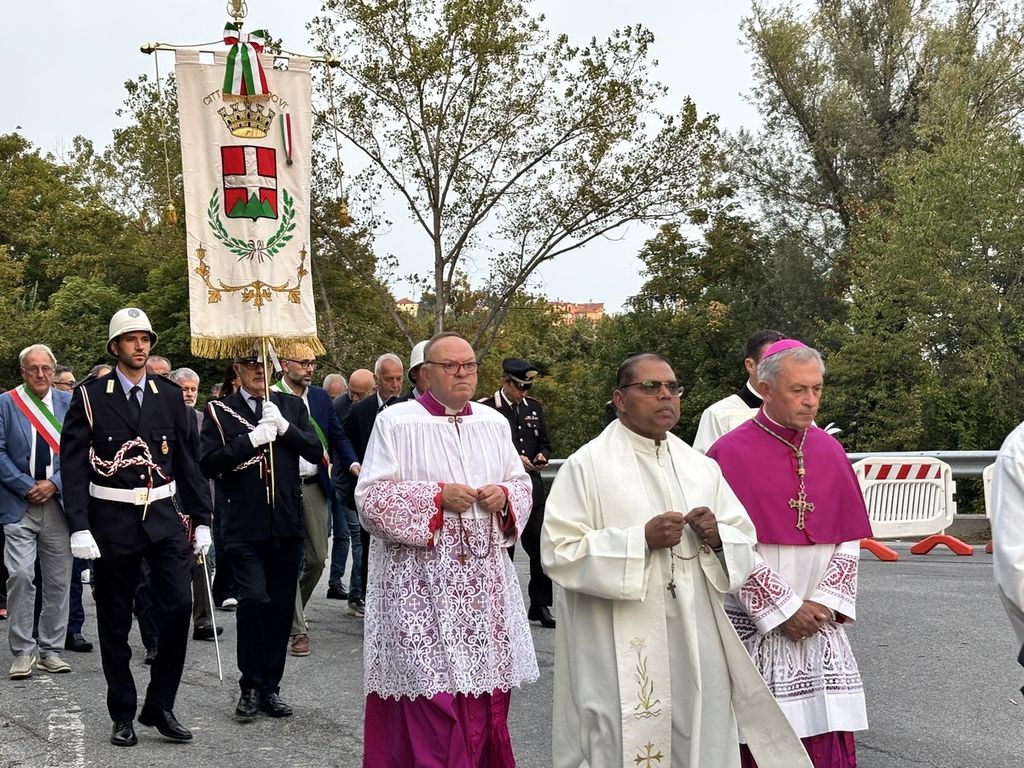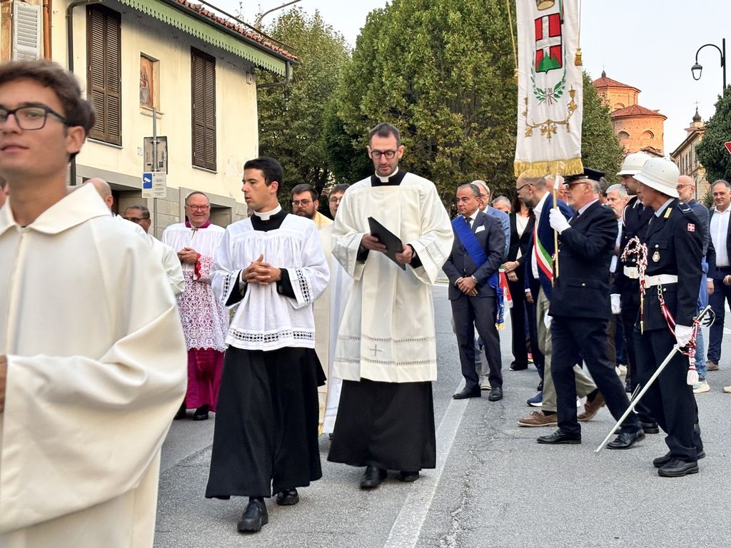 Il corteo, partito dal Duomo di Piazza, ha visto la presenza di tanti amministratori, tra questi il primo cittadino di Mondovì Luca Robaldo, tanti sindaci del territorio, il senatore Giorgio Maria Bergesio, le autorità religione, civili e militari.