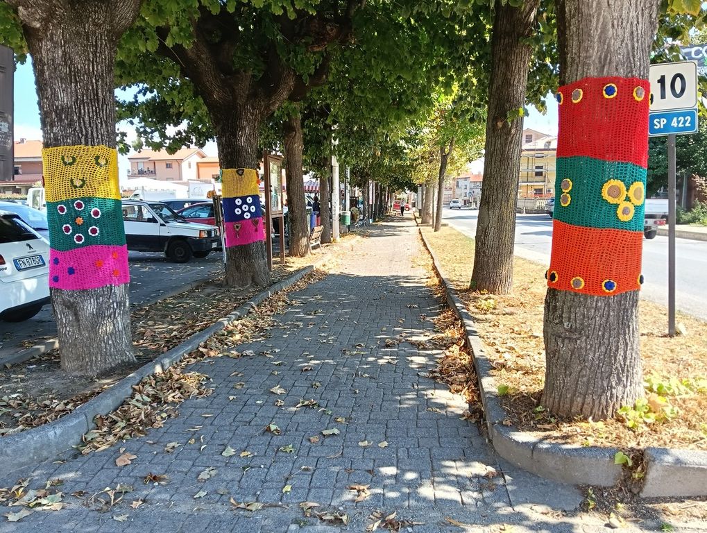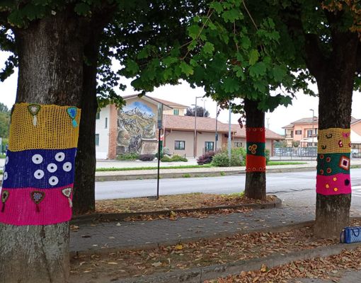 Simpatica iniziativa a Margarita dove, per l'inizio del nuovo anno scolastico, le signore del gruppo uncinetto hanno vestito a festa gli alberi del paese.