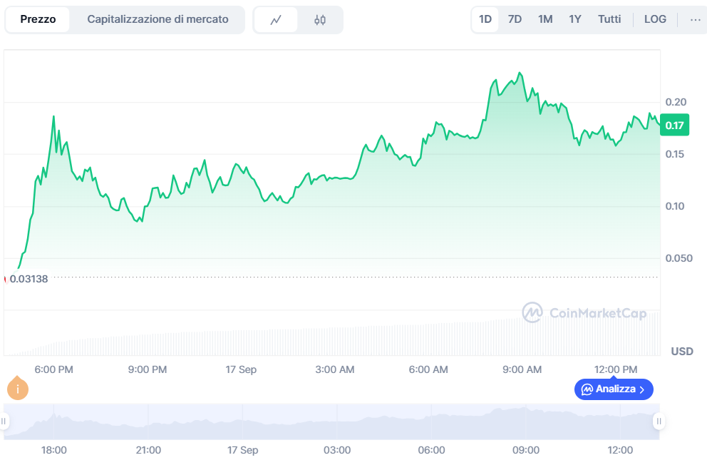 Infatti, in appena 24 ore, il prezzo della crypto ha registrato un rialzo superiore al 440%, un risultato che spicca rispetto alla crescita modesta del mercato nel suo complesso, fermo a un incremento dello 0,5%.