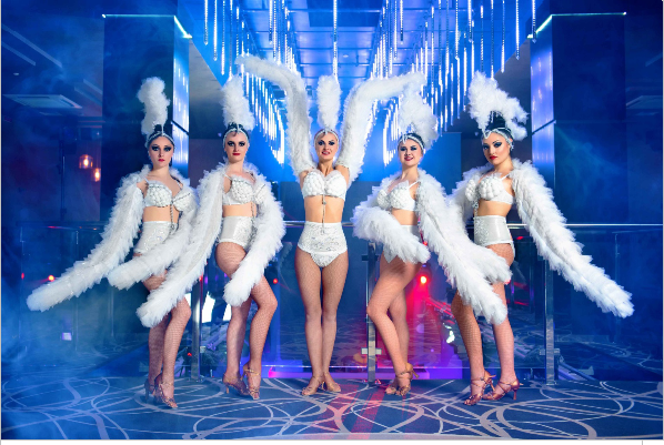 "Cabaret Riviera" è un Dinner show dal fascino retrò, in cui eleganza e divertimento si incontrano tra coreografie scintillanti e musiche vintage capaci di far vibrare l’anima. Il corpo di ballo porta in scena numeri raffinati e coinvolgenti, mentre la colonna sonora riaccende la magia dei tempi d’oro dello spettacolo dal vivo.