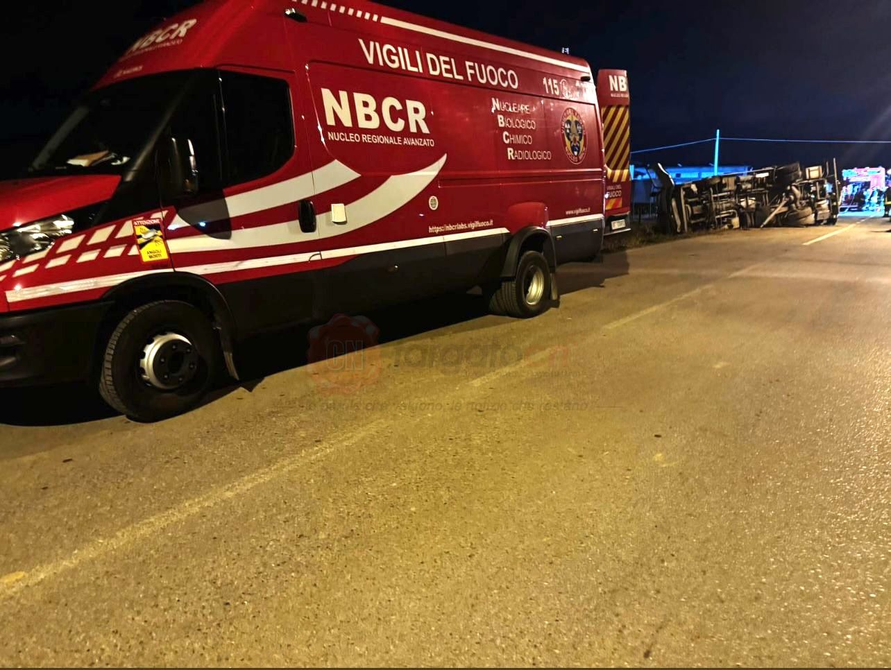 I tecnici del nucleo regionale avanzato Nbcr dei Vigili del Fuoco (l'acronimo sta per Nucleare - Biologico - Chimico - Radiologico) hanno poi provveduto a far bruciare il gas avanzato, di modo da consentire che le operazioni di recupero del mezzo pesante possano avvenire in totale sicurezza.