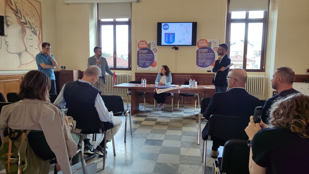 Il Salone Orientamento è coordinato dal Sistema Regionale Obiettivo orientamento Piemonte, che fornisce informazioni e supporto in merito alla scelta del percorso di studio - ha illustrato Elisa Bonardo coordinatrice per il bacino saluzzese- il sistema è finanziato dal Fondo Sociale Europeo Plus (FSE+) ed eroga servizi orientativi che coinvolgono tutti gli istituti del territorio (poichè peculiarità di questo, il bacino saluzzese vi ha aderito in toto) attraverso azioni di gruppo, incontri nelle classi, colloqui individualli offerti alle famiglie e studenti, oltre a seminari per i genitori ove la scuola ne fa richiesta. Sempre con orientatori professionisti".