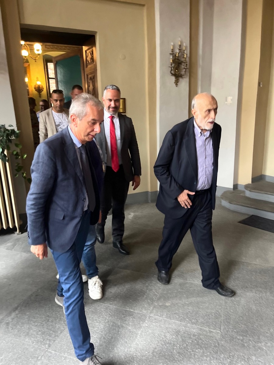 Con grande emozione il sindaco di Bra Gianni Fogliato ha incontrato, insieme a numerosi assessori e consiglieri comunali, il sindaco di Betlemme Maher Nicola Canawati domenica 21 settembre in municipio per un momento istituzionale e celebrativo del gemellaggio tra le due città, durante la manifestazione “Cheese”. All’incontro ha partecipato anche il fondatore di Slow Food e presidente dell’Università di Scienze Gastronomiche di Pollenzo, Carlo Petrini.