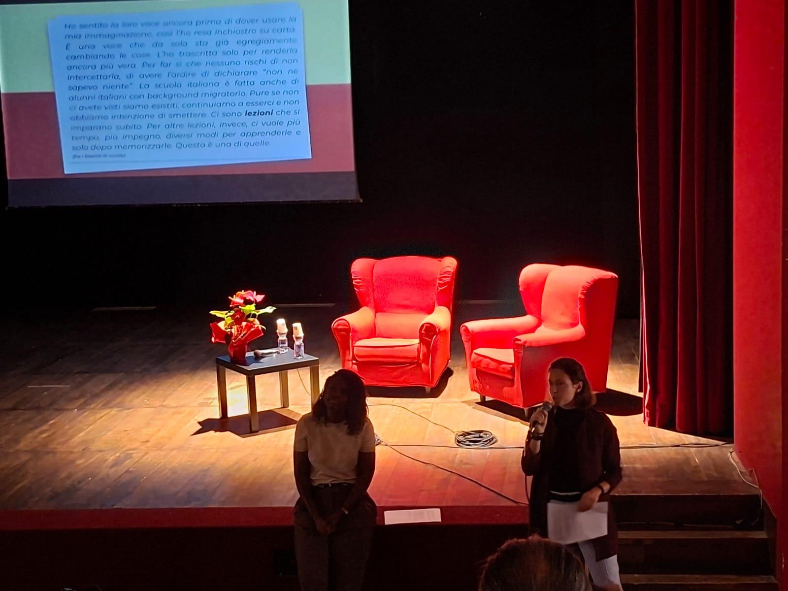 Il 12 settembre le classi 3^A, 2^F e 5^F del liceo Bodoni hanno preso parte a un incontro speciale al teatro Magda Olivero di Saluzzo con la scrittrice Espérance Hakuzwimana. L’iniziativa ha offerto agli studenti la possibilità di ascoltare dal vivo una testimonianza intensa, capace di unire memoria, identità e letteratura.