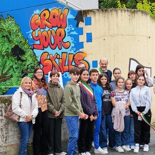 Un murales per colorare la scuola: inaugurata l’opera alla Media “Einaudi” di Cavallermaggiore