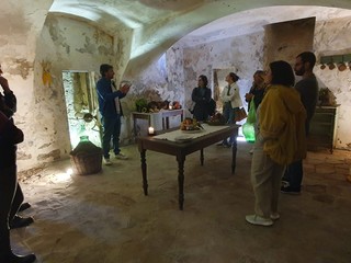 Grande fascino ha suscitato anche la visita alle cantine: antiche botti, damigiane, fiaschi, un torchio e vari strumenti di vinificazione, insieme alla cucina, rimasta ferma nel tempo, con ancora il montacarichi per le vivande che serviva la sala da pranzo, e alla ghiacciaia medievale, un tempo utilizzata per conservare la neve trasformata in ghiaccio.