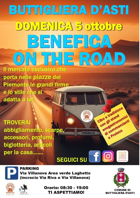 "Benefica on the Road" nasce dalla passione e dall'impegno di un gruppo di lavoro che ha già portato il mercato di Piazza Benefica (il "Giardino Luigi Martini") ai vertici del gradimento cittadino, con l'obiettivo di valorizzare il Made in Italy e la qualità per tutti. Come dice Giorgio Sanfilippo: “Portiamo in giro per il Piemonte il fascino del mercato più chic di Torino”.