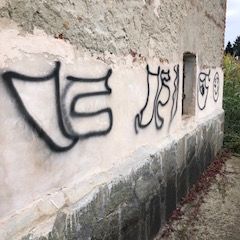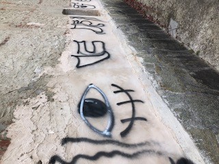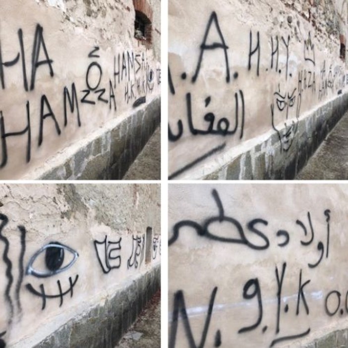 Un cascinale, isolato rispetto al resto del centro di Confreria, è stato preso di mira: muri imbrattati da scritte e simboli sconosciuti.