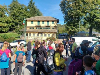 I camminatori hanno percorso gli antichi sentieri che dai sei comuni –conducono alla Trappa.