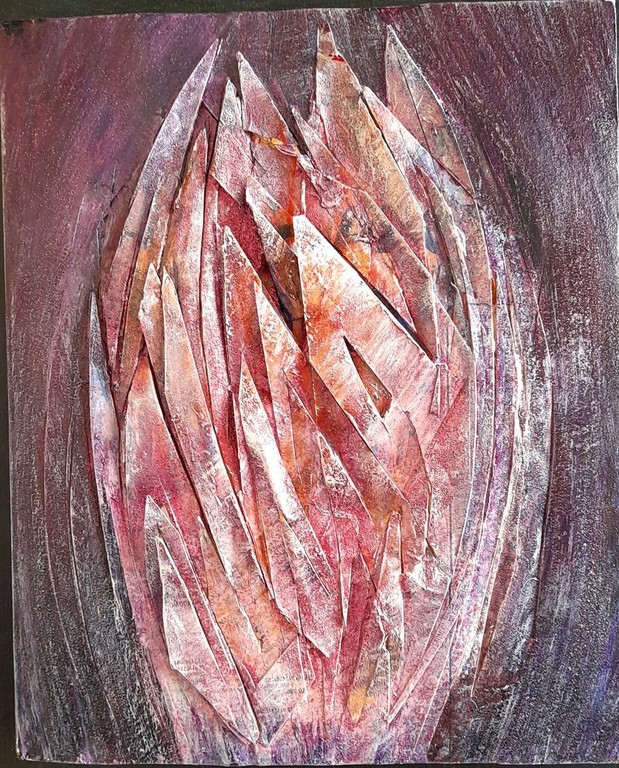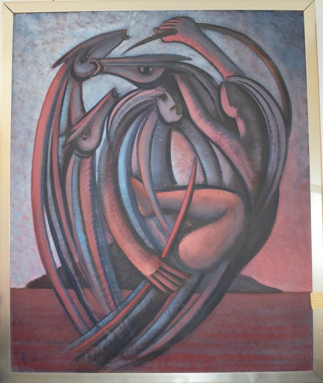 Il critico d’arte e poeta Remigio Bertolino ricorda che: “L’iter artistico di Francesco Russo Buròt (1945-2022) è una continua, infaticabile ricerca per cercare di raggiungere l’essenza dell’arte. Negli anni giovanili frequenta lo studio del maestro valdostano Italo Mus. In seguito quello di Eso Peluzzi, a Monchiero, e più frequentemente quello del maestro francese Max Dissar a Verduno. Tre maestri che lasciano il segno nel suo operare, nel suo accostarsi al paesaggio o alla figura. Francesco Russo Buròt ha sperimentato vari materiali, varie forme con cui esprimere le sue sensazioni, i suoi sentimenti, il suo mondo interiore. Nel pittore monregalese vari “stili” si avvicendano in una sorta di continuo fiorire e rifiorire: dal realismo impegnato degli anni Settanta, alla quasi astrazione del ciclo delle forme primordiali degli anni Novanta, da un figurativo moderno e lirico ad un mondo all’insegna del surreale. In ogni fase del suo operare, il pittore monregalese sprofonda totalmente nel soggetto, ne è come posseduto, tende a sviscerarlo in ogni dettaglio fino al completo esaurimento del tema. Insomma, vi è in lui una assidua ricerca sull’immagine sia mimetica sia creata dalla fantasia e dalla immaginazione. Alla fine degli anni Sessanta inizia a partecipare a mostre e a concorsi con ampie vedute di Langa sospese in luci di magica poesia. Il decennio del 1970 è un periodo di fervore creativo: Francesco Russo Buròt dà una svolta alla sua pittura «en plein air» fatta di vibranti impressioni luminose per scendere nel solco della pittura «impegnata», di stampo neorealista. È il periodo di Baracco, nell’alta Valle Ellero, della Pra in Valle Corsaglia, borghi rimasti intatti e isolati, lassù nello splendore dell’alpe. L’artista adibisce una spoglia rimessa ad atelier di arte e vive a contatto con gli ultimi rappresentanti di un microcosmo in via di estinzione. A Baracco, conosce Cin, il montanaro che incarna il prototipo del saggio, fautore di un’aurorale e francescana vita a contatto con la natura, nell’amore per ogni forma vivente. Il vecchio diventa il suo guru, conduce l’artista alla scoperta di un universo sommerso e occulto. Come Cézanne e Degas, egli si serve della fotografia per catturare le sensazioni visive che scaturiscono dal vivere in quell’isola sospesa fuori del tempo. Spesso utilizza i particolari tagli o gli intensi primi piani sia negli oli, sia nelle xilografie. Alla Pra di Roburent incontra il “Profeta” (Giacomo) e Lucia; conosce la triste conclusione della storia d’amore del contadino-pastore. Ritrae i fratelli in vari momenti, cogliendone magiche suggestioni, atteggiamenti che sanno quasi di ricerca ascetica. Intanto, procede anche sul piano della scultura con quelle forme lignee o scolpite su pietra di grande impatto: gruppi familiari, maternità, o singoli personaggi stilizzati, dalle forme allungate, spesso cave, che riecheggiano Henry Moore. Gli anni Novanta sono contrassegnati da una svolta all’insegna dell’astrazione. Burot raffigura universi arcani con forme aperte a ventaglio che spesso ricordano microcosmi raggianti in spazi misteriosi. Questa ricerca prosegue nel nuovo Millennio con i vecchi libri, gli elenchi telefonici, le riviste che diventano «altro», trasformati in forme astratte. In scultura è il periodo dei galli dalle forme geometrizzanti e dai magici accesi colori. L’animale, che ha una lunga tradizione tematica nella ceramica monregalese, è scolpito su legno di salice di montagna, materia povera, ma in grado di rispondere pienamente alle esigenze dello scultore. «Il bosco delle fiabe» è l’ultimo ciclo di sculture di Buròt. Dopo le opere sui “galli”, l’artista ha intrapreso un tema nuovo, incentrato sulla fiaba e sulla fantasia. Questa sequenza di sculture, di piccolo formato, nasce da una appassionata immersione nella natura. Burot va alla ricerca dell’anima delle nostre selve, dei nostri boschi. Attraverso la suggestione di favole e miti crea un universo di magiche creature (ninfe, elfi, gnomi, “servan”, “masche”...). Il bosco è il luogo misterioso per eccellenza, in cui sono ambientate molte fiabe, luogo dove tutto può succedere, dove il male può presentarsi sotto varie forme... Dalle sue escursioni solitarie, lo scultore recupera pezzi di rami, scaglie di tronchi, cortecce, filamenti, bacche. Poi, nel silenzio dello studio, trae dal “materiale povero” con estro creativo, forme, figure legate, in qualche modo, con il mito, con il folclore, con l’inconscio... Nel nero periodo del confinamento a causa della pandemia (2020-21), il pittore non è rimasto inerte, ma ha cercato di vedere oltre la desolazione che si stendeva al di là della finestra dello studio. Si è immerso in un microcosmo di sensazioni cromatiche, di immagini rutilanti, fantasmagoriche. Come Alice nel paese delle meraviglie ha spalancato la porta di mondi paralleli. Ha cercato di evadere dal carcere della solitudine e dell’isolamento attraverso il gioco dell’invenzione continua e spiazzante. Sono scaturite immagini dai colori rutilanti, stesi sul foglio con i pennarelli in un rimescolamento di stili, di citazioni, di rielaborazioni".