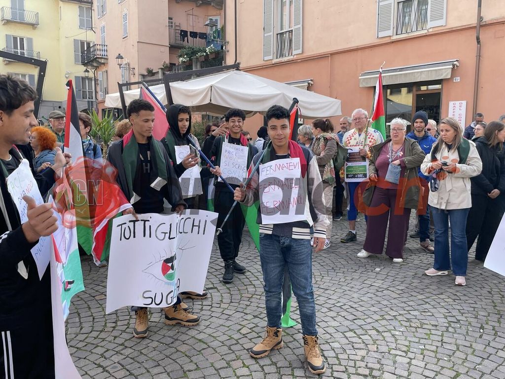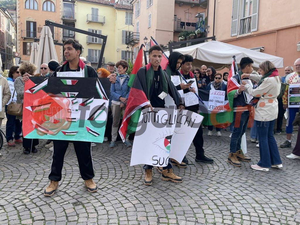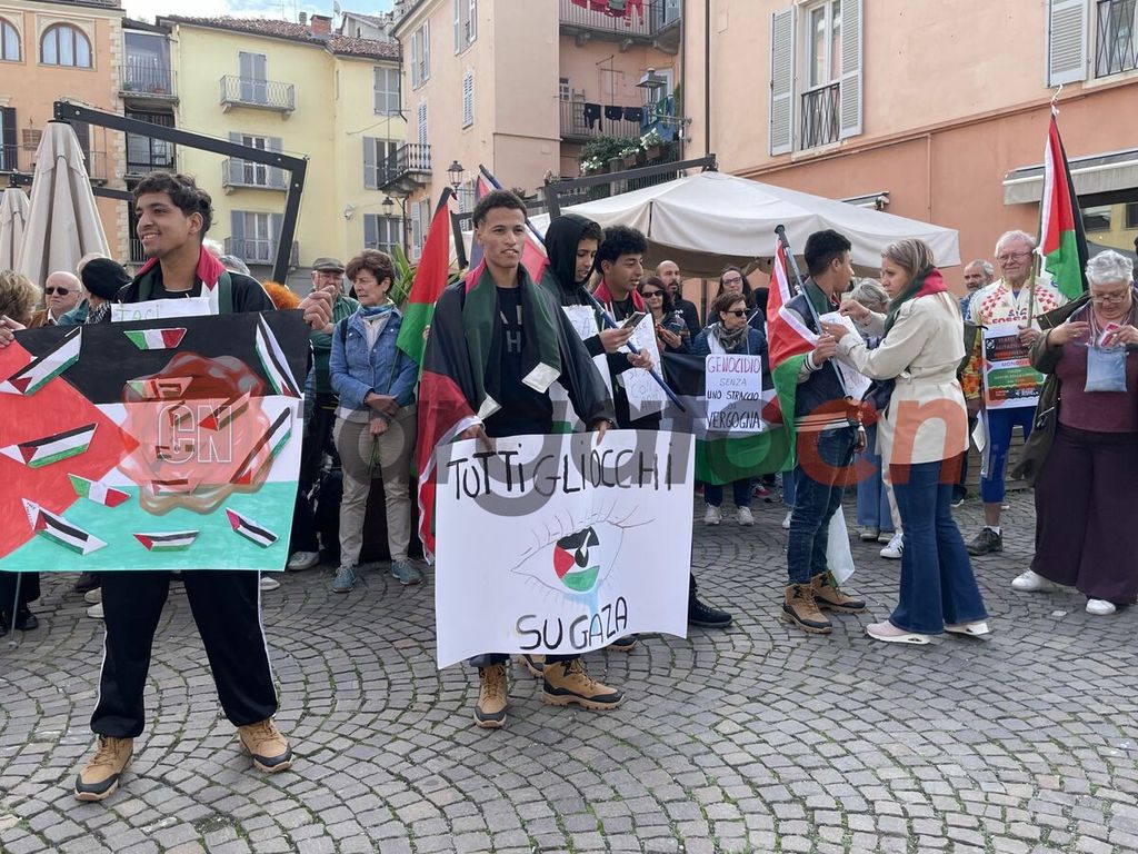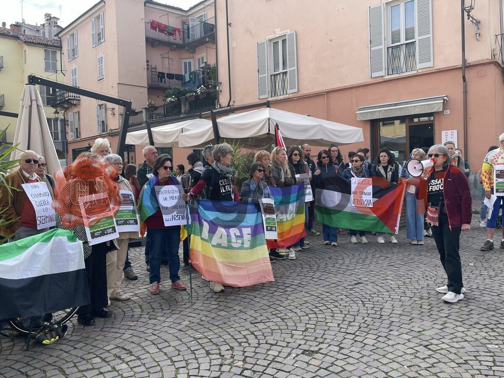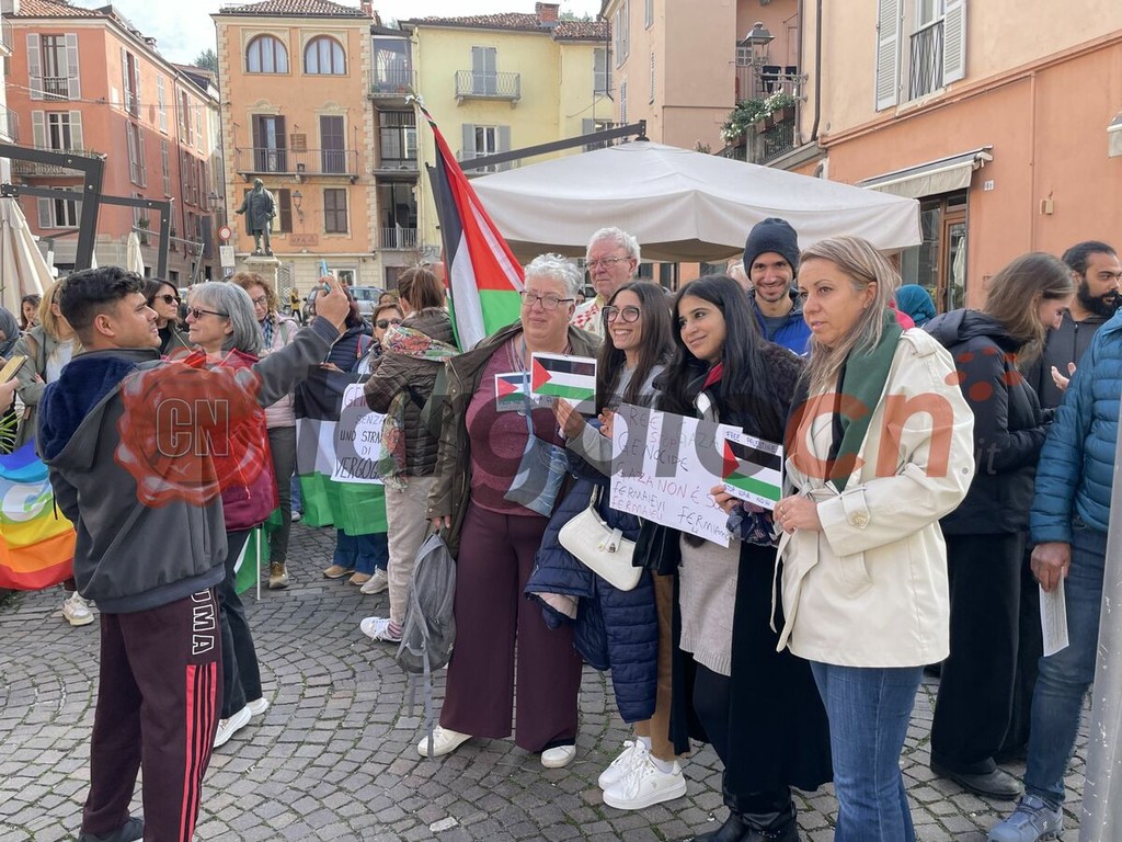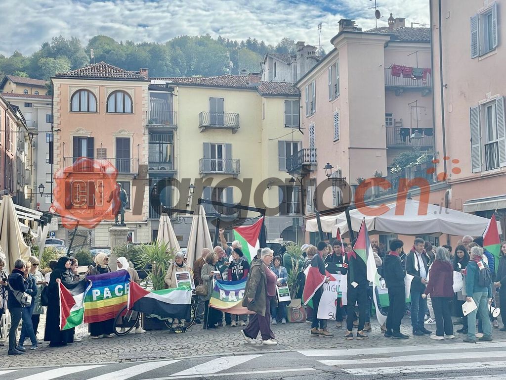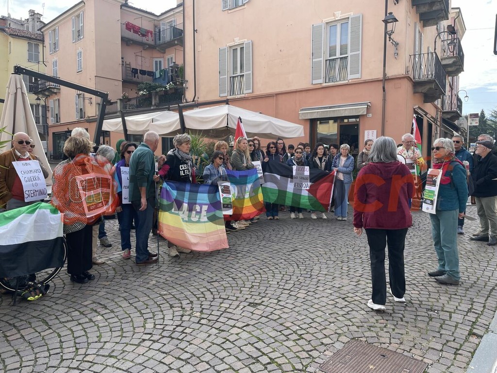 A Mondovì il presidio, di fronte al municipio, è stato organizzato dal gruppo delle "Donne in cammino per la pace" che, da giorni, protestano pacificamente in piazza Martiri della Libertà.