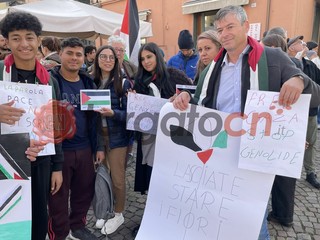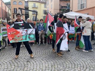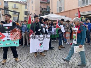 "Contro il genocidio in atto da quasi due anni nella striscia di Gaza, a sostegno del popolo palestinese e per chiedere la sospensione di ogni fornitura di aramamnenti e merci".