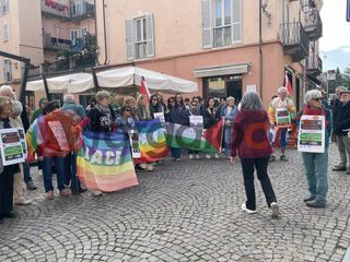 A Mondovì il presidio, di fronte al municipio, è stato organizzato dal gruppo delle "Donne in cammino per la pace" che, da giorni, protestano pacificamente in piazza Martiri della Libertà.