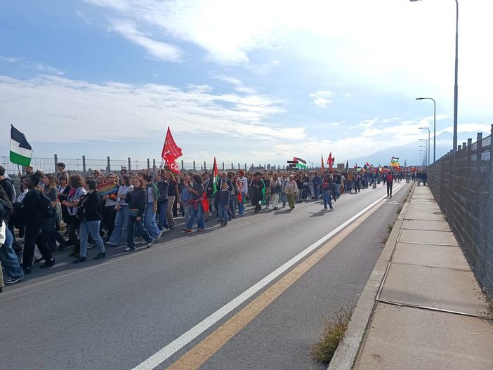 La manifestazione ha raggiunto il suo apice con una svolta inattesa: un cambio di percorso non programmato, che ha portato il corteo dal viadotto Soleri all’occupazione del Ponte Nuovo, dove il traffico è stato temporaneamente bloccato in entrambe le direzioni. Un mare di persone ha attraversato il ponte in doppio senso di marcia tra i fumogeni dai colori della bandiera palestinese - bianco, verde, rosso e nero - al grido di “Blocchiamo tutto!”. Un’azione dimostrativa e un cambio del percorso autorizzato dalla Questura che non ha comunque tradito la natura pacifica e ordinata della manifestazione, proseguita senza alcun tipo di frizione con le forze dell'ordine impegnate ad accompagnarla.