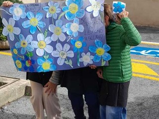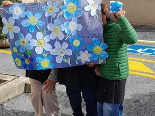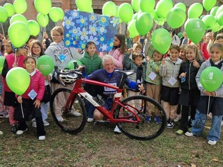 I bambini della scuola hanno accolto il gruppo sportivo con disegni e cartelloni realizzati insieme agli insegnanti, per manifestare la propria solidarietà verso un’iniziativa tanto importante: “tutti in sella per la ricerca!”.