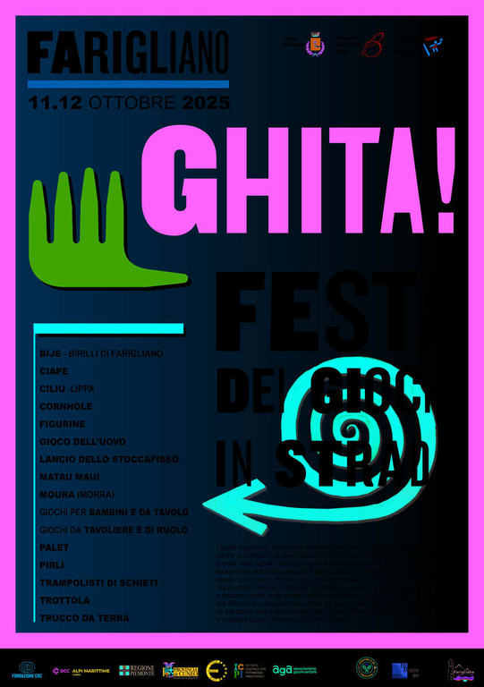 “Ghita” riprende l’espressione dialettale usata durante il gioco dai bambini fariglianesi per dire ‘basta, alt, tregua’, per interrompere momentaneamente il gioco, per riprendere fiato e poi ricominciare ed è una manifestazione nata tre anni fa con l’obiettivo di salvaguardare e tramandare la cultura legata ai giochi di strada.