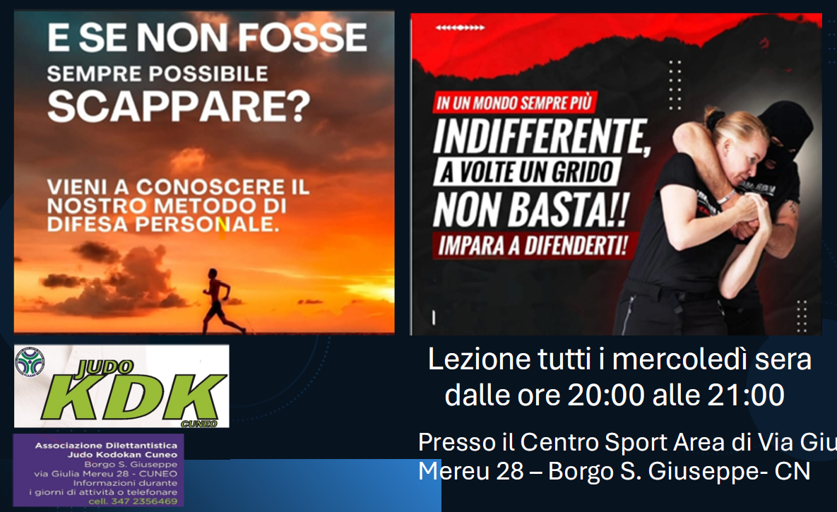 Se stai cercando un modo per sentirti più sicuro nella vita di tutti i giorni, l'ASD Judo Kodokan Cuneo lancia un nuovo corso di difesa personale rivolto ad adulti e ragazzi a partire dai 16 anni. L'obiettivo non è solo imparare a reagire in situazioni di pericolo, ma anche acquisire maggiore consapevolezza di sé e delle proprie capacità.