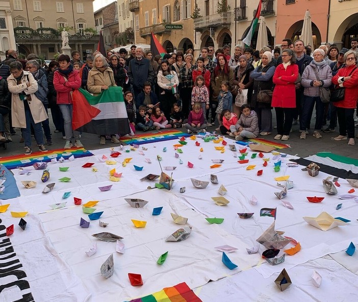 Un flashmob promosso dal “Tavolo della Pace” si è svolto nel pomeriggio di ieri, sabato 4 ottobre, in piazza Santarosa a Savigliano per chiedere la fine del conflitto a Gaza e per esprimere solidarietà alla Global Sumud Flotilla, recentemente intercettata dalla marina israeliana.