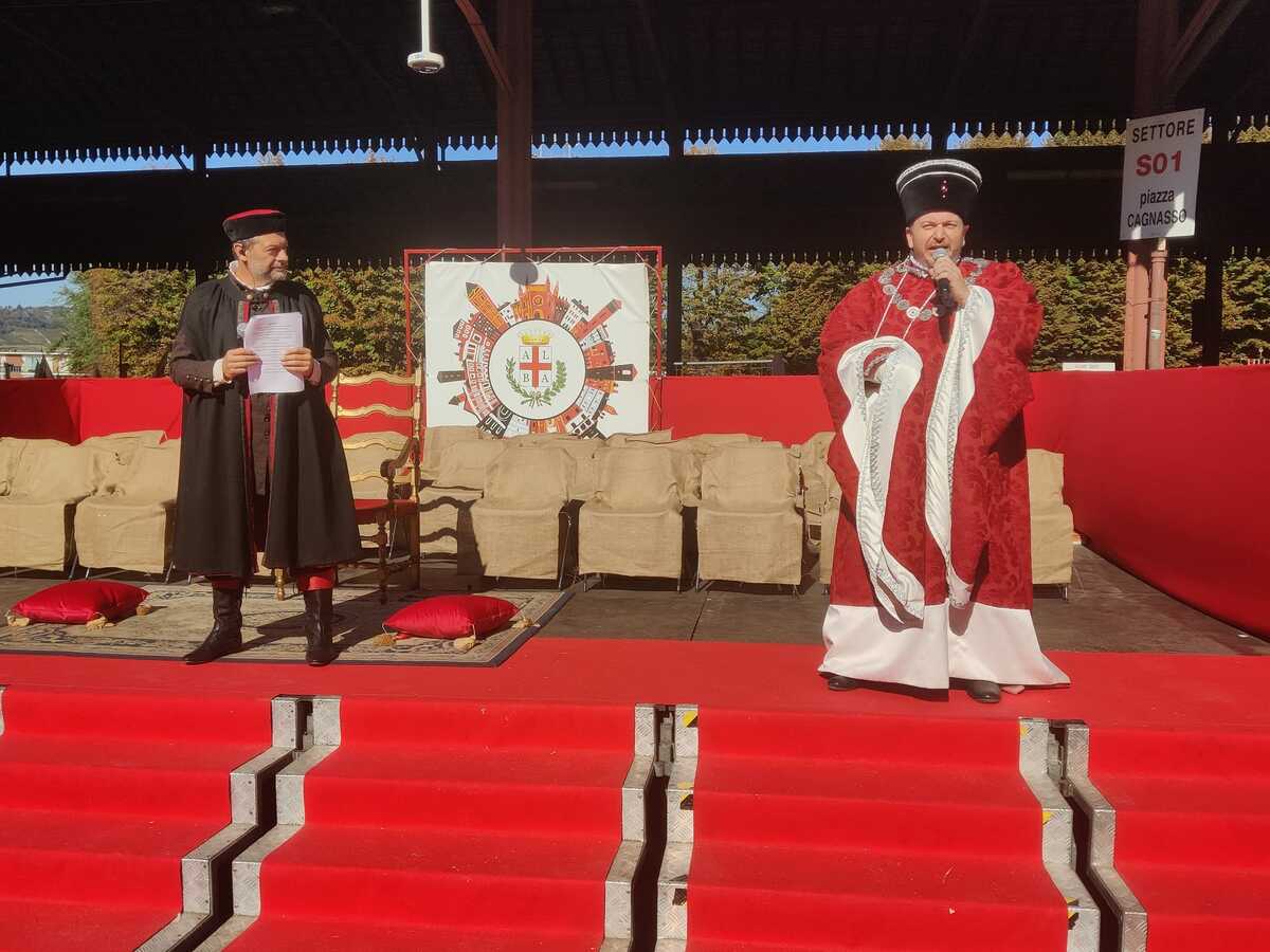 Una splendida giornata di sole quella che ad Alba va accompagnando lo spettacolare rituale che porta alla disputa del Palio degli Asini, la disfida tra i nove borghi cittadini che tradizionalmente anticipa l’apertura della Fiera Internazionale del Tartufo Bianco d’Alba.