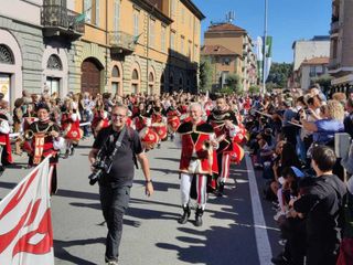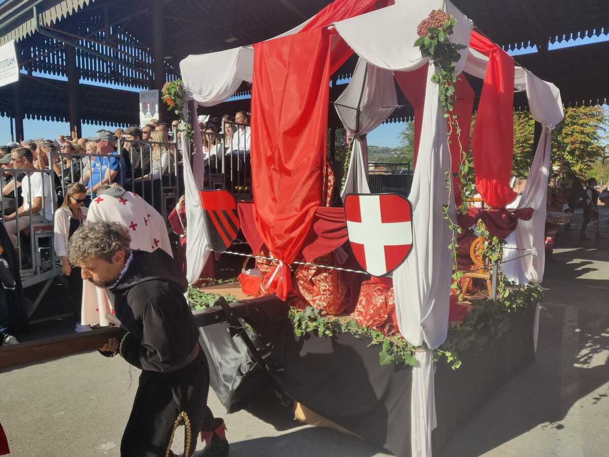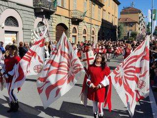 Il corteo percorrerà corso Fratelli Bandiera e corso Matteotti, per poi proseguire fino in piazza Cagnasso, teatro del Palio che vedrà i rioni della città contendersi il drappo quest’anno dipinto dall’artista albese Enzo Mastrangelo.
