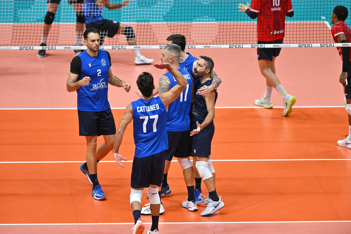 Se contro Modena il tecnico piemontese ha schierato quello che sulla carta dovrebbe essere il sestetto titolare, con i piacentini spazio a Claudio Cattaneo in diagonale di posto-4 con Ivan Zaytsev e Riccardo Copelli a far coppia con Lorenzo Codarin nel tandem al centro. A riposo sia Sedlacek che il neo arrivato Stefanovic, entrati solo nel terzo set. Spazio a tratti anche per il giovane opposto Lorenzo Sala, che ha giocato a sprazzi per rilevare Feral.