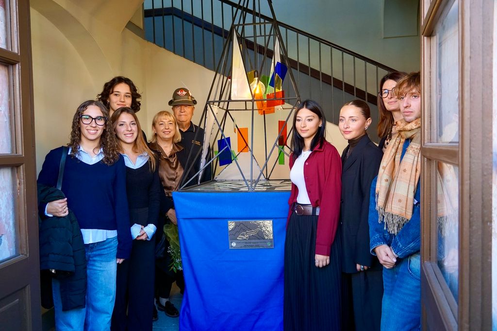 "Un ‘opera molto cara alla scuola in quanto selezionata dal Ministero, dal titolo "Find the light" ha spiegato la dirigente del liceo Alessandra Tugnoli - titolo il cui significato porta alla ricerca della luce intesa come bene comune, strettamente legata al valore del sacrificio che Mario Musso offrì al proprio paese. Una piramide in acciaio, plexiglass e tessuto che vuole rappresentare per i tanti guovani che frequentano la caserma, sede della scuola, un messaggio di incoraggiamento a cercare la luce per sè e il miglioramento della società".