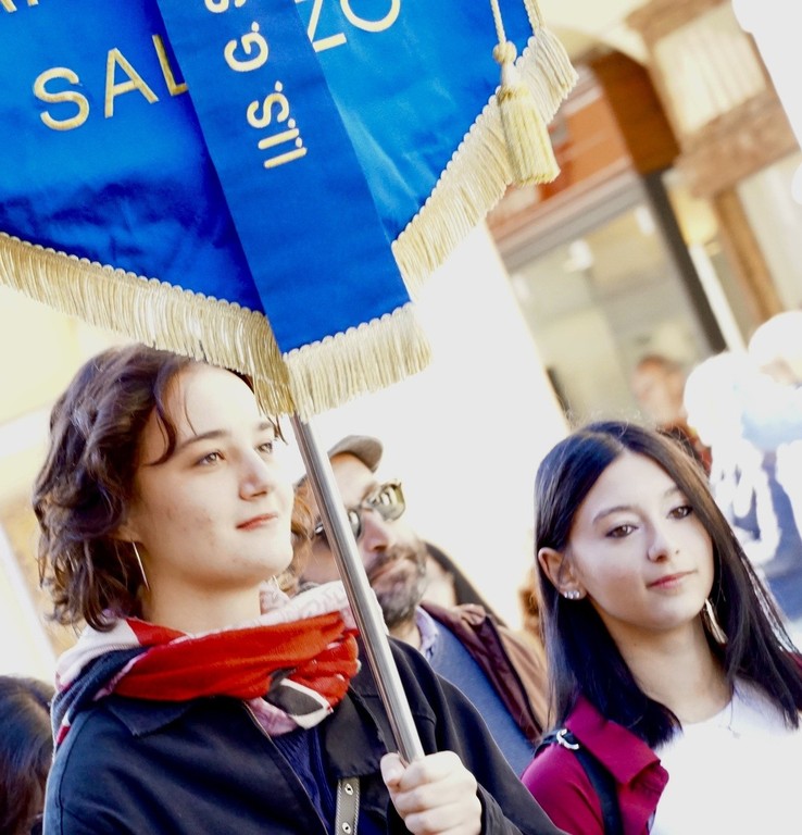 "Un ‘opera molto cara alla scuola in quanto selezionata dal Ministero, dal titolo "Find the light" ha spiegato la dirigente del liceo Alessandra Tugnoli - titolo il cui significato porta alla ricerca della luce intesa come bene comune, strettamente legata al valore del sacrificio che Mario Musso offrì al proprio paese. Una piramide in acciaio, plexiglass e tessuto che vuole rappresentare per i tanti guovani che frequentano la caserma, sede della scuola, un messaggio di incoraggiamento a cercare la luce per sè e il miglioramento della società".