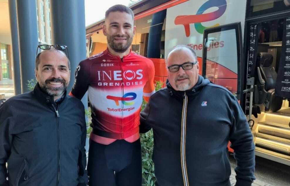 Il bicampione mondiale a cronometro (2020 e 2021) ha in questi giorni incontrato alcuni rappresentanti dell'AC Bra, unica squadra professionista della provincia “Granda”. Ganna ha scattato una foto con il CEO Gianluca D’Angelone e il DS Ettore Menicucci.