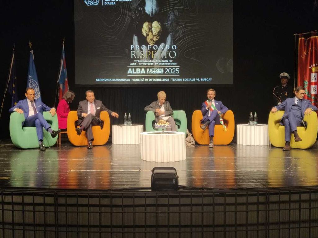 È iniziata la cerimonia di inaugurazione della Fiera Internazionale del Tartufo Bianco d’Alba, che per il momento di apertura della sua 95ª edizione ha raccolto al Teatro Sociale Busca le massime autorità istituzionali di Regione e Provincia, con in testa il governatore piemontese Alberto Cirio, per lunghi anni presidente dell’Ente Fiera, insieme a personalità del mondo economico, politico e del terzo settore.