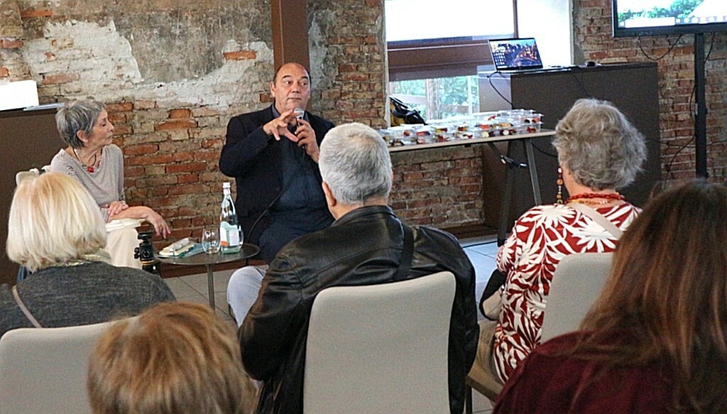 Sotto la Pergola bioclimatica, si è poi tenuto l’incontro con Claudio Porchia, giornalista ligure e ideatore del Festival nazionale della Cucina con i Fiori, affiancato da Mariagrazia Dammicco, presidente del Wigwam Club Venezia. I due hanno presentato il volume Ricette per ogni stagione di Libereso Guglielmi, recentemente pubblicato da Edizioni SemiRurali: un libro che racconta con semplicità e poesia la cucina naturale del “giardiniere di Calvino”, custode di un sapere botanico e gastronomico d’altri tempi.