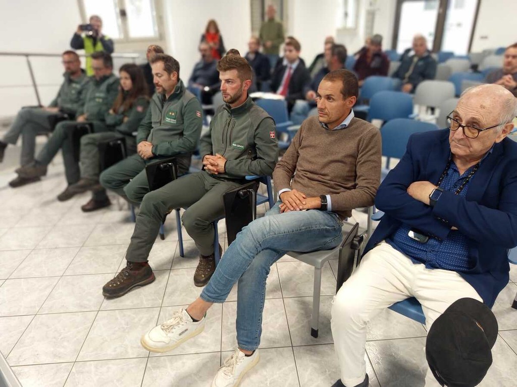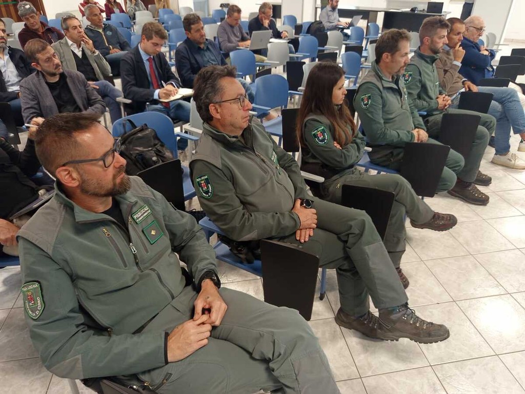 Al tavolo dei relatori il presidente della Provincia Luca Robaldo, il dirigente del settore Supporto al territorio Alessandro Risso, Luca Orlando del Dipartimento Prevenzione Asl Cn 1 e Valerio Civallero, comandante del corpo di Polizia Locale Faunistico Ambientale della Provincia di Cuneo.