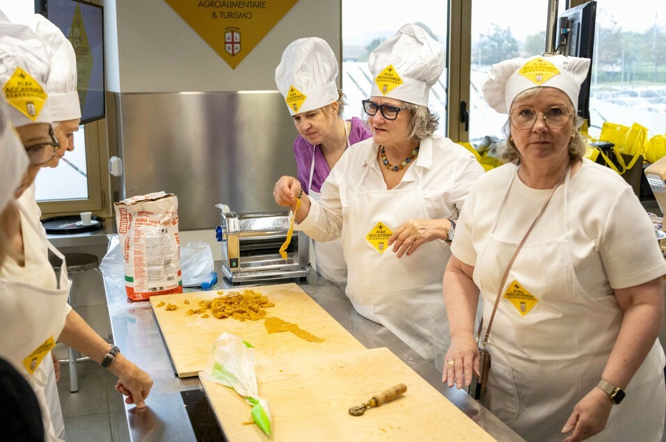 Nuovi ospiti internazionali in Alba Accademia Alberghiera: quattordici donne svizzere appartenenti all’associazione Gastrosophinnen Schweiz hanno preso parte alla masterclass dedicata ai piatti più iconici della gastronomia delle Langhe, guidata da Paolo Taricco, main chef di Alba Accademia Alberghiera. Gastrosophinnen Schweiz, associazione culinaria svizzera composta esclusivamente da donne, riunisce appassionate di gastronomia, professioniste e studiose del mondo del cibo e della cultura enogastronomica.