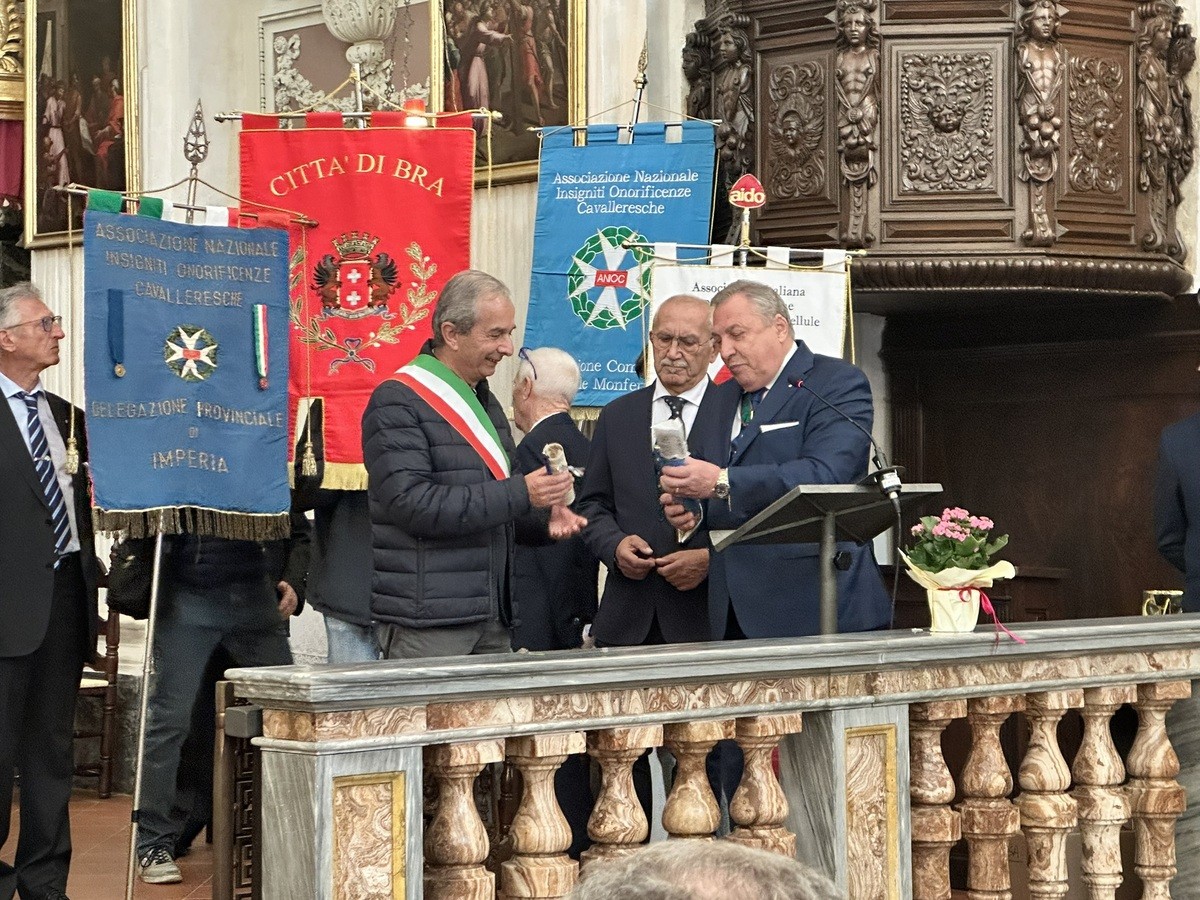 “Un’ evento ,ha esordito il Comm. Malvino’ , che ci vede riuniti per la terza volta nella Citta di Bra in questa splendida chiesa, concessaci dalla confraternita dei Battuti Bianchi a cui va il ns ringraziamento, e ci scusiamo del cambiamento di programma, in quanto non si è reso possibile la celebrazione della Santa Messa. Un’ appuntamento fortemente voluto dalla locale Delegazione di Bra, che festeggia i 10 anni della sua costituzione, una Delegazione guidata ininterrottamente in maniera esemplare dall’ uff Stefano Milanesio coadiuvato dal suo direttivo .
